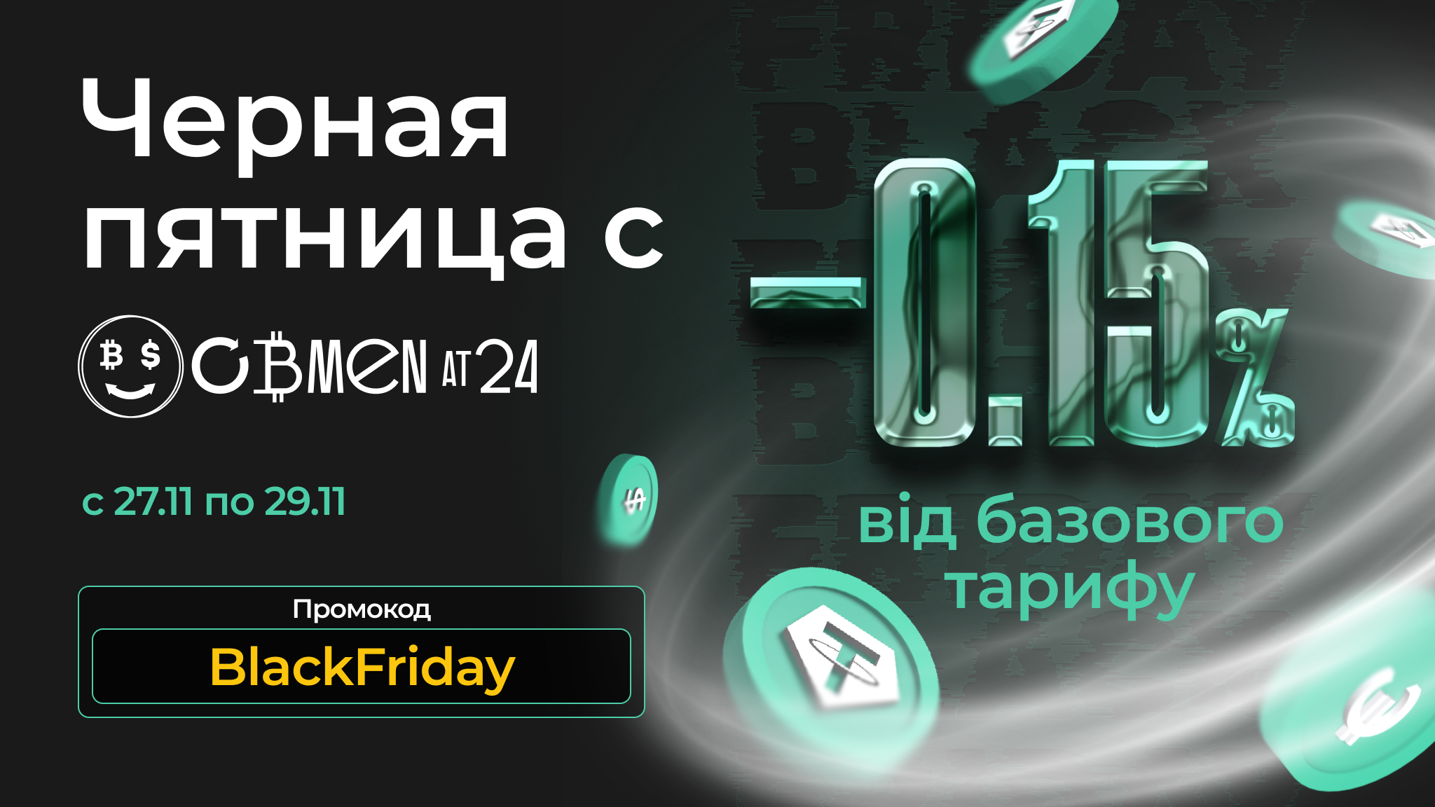 Черная Пятница с ObmenAT24! Тариф на 0.15% выгоднее с Промокодом BlackFriday с 27.11 по 29.11